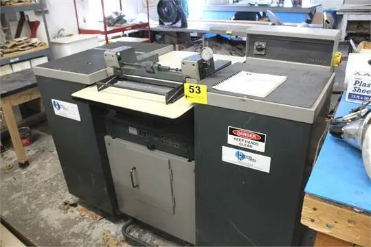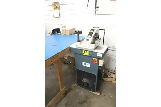 (2) DREMEL ELECTRIC MOTO TOOLS IN BOX; (2) OIL CANS, TROWEL IN BOX; ASSORTED SAWS, BRACES IN BOX; (4) MANUAL DEBURRING TOOLS IN BOX; ASSORTED HAND TOOLS IN BOX; ASSORTED HOLE SAWS IN BOX; ASSORTED CAULK GUNS; (3) MANUAL GREASE GUNS; (5) ASSORTED C-CLAMPS; BENFIELD CONDUIT BENDER; (2) JUSTRITE & (1) UNMARKED PLUNGER CANS; (1) ROLL 12 GA WIRE; (1) ROLL MILD STEEL WELDING WIRE, (1) ROLL LIGHTWEIGHT CHAIN; DREMEL WOODBURNER / SOLDERING IRON KIT; ASSORTED TOOLS IN WOOD BOX; (2) ROLLS PLASTIC SHEETING; (10) BOTTLES KLEENMASTER BRILLIANIAZEACRYLIC & PLASTIC CLEANER; (3) CLAMP ON LIGHTS; (2) ASSORTED STAMPS; BOSTITCH LONG REACH STAPLER IN BOX; BOSTITCH LONG REACH STAPLER IN BOX; PNEUMATIC BOX STAPLER WITH ((7) BOXES STAPLES; GENIE 20 GALLON / 5 HP PORTABLE SHOP VAC; EAGLE PROFESSIONAL HVLP SPRAYING UNIT WITH (2) CENTRAL SPRAY GUNS; MANUAL & BATTERY POWERED SPRAYERS; JET MODEL AP-3 3 TON BENCH TOP ARBOR PRESS; STIMPSON MODEL 405 BENCH PRESS / GROMMET PRESS; ROCKWELL MODEL 23-650 1/3 HP 6″ DOUBLE END BENCH GRINDER, WITH CABINET & ACCESSORIES; ATLAS 1/2 HP FLOOR STANDING DRILL PRESS; CRAFTMSAN MODEL 113.2259320 COMBINATION DISC & BELT SANDER, ON STEEL STAND; 8 COMPARTMENT CUBBYHOLE CABINET WITH SLANTED WORK TOP, 30″ D X 96″ L; 48″” X 96″” HEAVY DUTY WOOD WORK BENCH; 48″” X 96″” HEAVY DUTY WOOD WORK BENCH WITH (2) DRAWERS; 48″” X 96″” HEAVY DUTY WOOD WORK BENCH WITH COATED TOP; 40″” X 48″” WOOD WORK BENCH WITH ASSORTED FOAM MATERIAL; 24″” X 60″” WOOD WORK BENCH; 24″” X 36″” X 72″” H 5 SHELF STEEL SHELVING UNIT WITH CONTENTS; 24″” X 36″” X 72″” H 5 SHELF STEEL SHELVING UNIT WITH CONTENTS; HOBART MODEL 1612E SLICER NOTE: MISSING CARRIAGE, GAUGE PLATE, KNIFE GUARD, BACK KNIFE COVER, ETC. WITH VARIABLE SPEED CONTROL; INGENTO MODEL GT 12″” PAPER CUTTER; VINTAGE 8″” PAPER CUTTER; EASTMAN CLASS 355 LIGHTING FABRIC / FOAM / CLOTH ROUND KNIFE CUTTER; EASTMAN CLASS 355 LIGHTING FABRIC / FOAM / CLOTH ROUND KNIFE CUTTER; 53″” X 12’L STEEL FRAME CUTTING TABLE; (2) EAZALL ZINC BARS; (2) ASSORTED SMALL WAX MELTING POTS WITH BASKETS & ACCESSORIES; WENESCO MODEL MPW20T ELECTRIC WAX MELTING POT S/N 95411D1 (ESTIMATED 80 QT CAPACITY), WITH POWER & TEMPERATURE CONTROLS, LID, DRAIN VALVE; TENNSMITH MODEL U48 48″ X 16 GA BENCH TOP APRON BRAKE, S/N 18564, WITH TENNSMITH STEEL STAND, ASSORTED EXTRA FINGERS; CHALLENGE MODEL HBE, SIZE 265, 26.5″ CAPACITY POWER PAPER CUTTER, S/N 24095, WITH HYDRAULIC CLAMPING; TMZ MODEL H-140/M MASTERCUT HAND FED PLATEN DIE CUTTER S/N H-2160/M, 100 X 140 CM CAPACITY; THOMPSON (EST) PLATEN DIE CUTTER, WITH REEVES VARIABLE SPEED GEAR DRIVE; CHANDLER & PRICE PLATEN DIE CUTTER; FORTUNA-SAS / HUDSON MODEL AN-400 PRECISION BANDKNIFE SPLITTING MACHINE S/N 9083, 400 MM WIDTH CAPACITY, DIAL INDICATOR TO INDICATE SPLITTING THICKNESS, MAX SPLITTING THCKNESS: ROLL .5 MM, MAX SPLITTING THCINESS: BAR .2MM, MAX CLEARANCE 8 MM; HUDSON MODEL SL 999/5 SWING BEAM DIE CUTTING CLICKER PRESS S/N 17A120298;