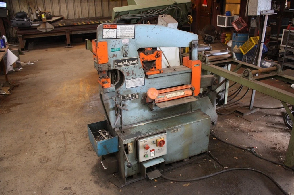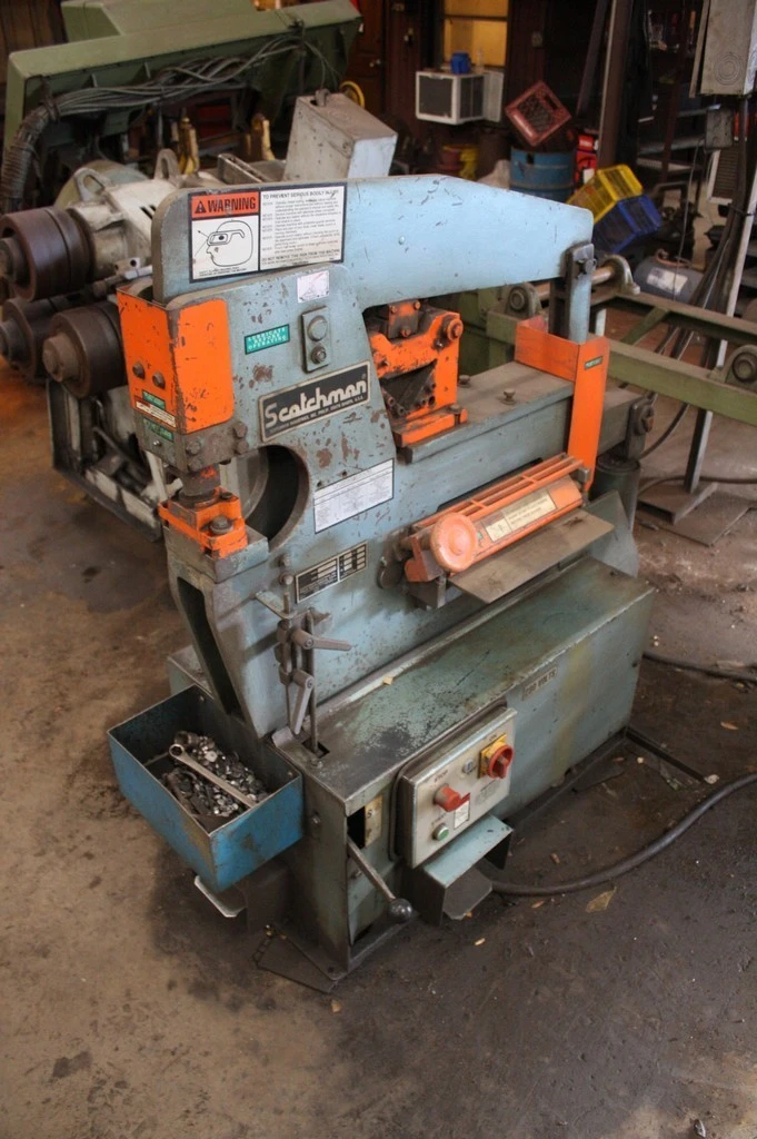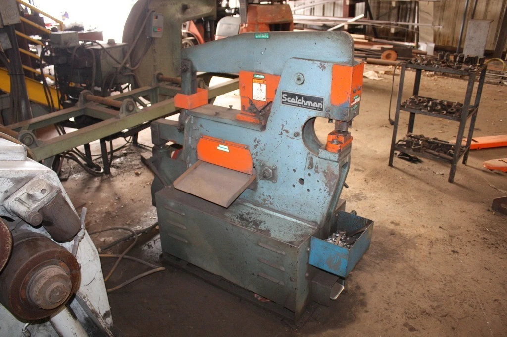 SCOTCHMAN MODEL 4014-C 40 TON HYDRAULIC IRONWORKER S/N 6377FF1095: Capacities: Angle Shear: 3″ X 3″ X 5/16″, Punch: 1″ Dia In 1/2″ Plate, Shear: 1/2″ X 6″ W, 1/4″ X 10″ W, 3/16″ X 14″ W