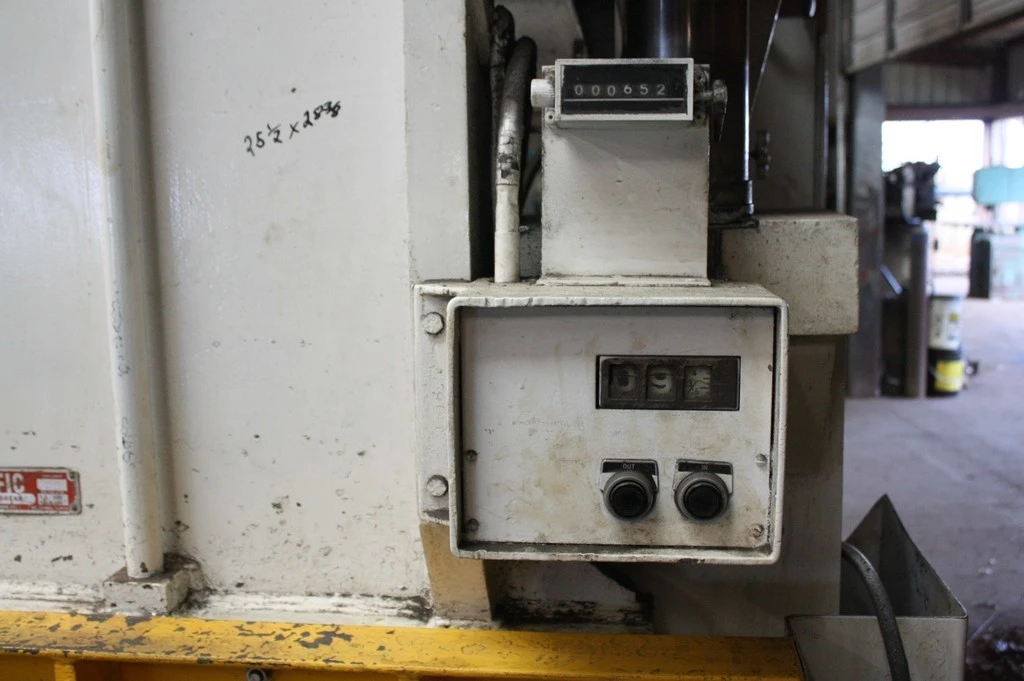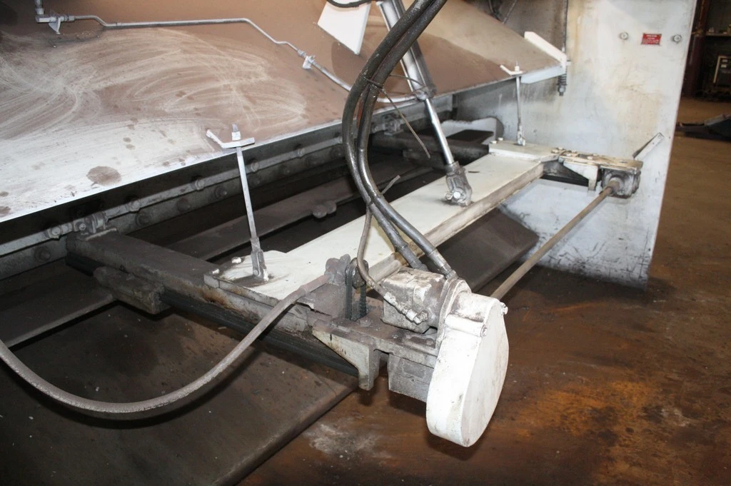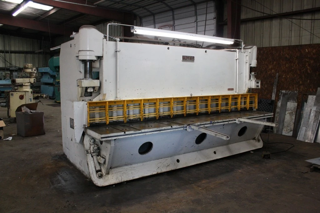 PACIFIC MODEL 375-R-12 3/8″ X 12′ HYDRAULIC POWER SQUARING SHEAR S/N 513855: 12′ X 3/8″ At 5/16″/Ft Rake Angle (Mild Steel), 1/2″/Ft Max Rake Angle, 12′ X 1/2″ Shear Capacity At Max Rake, (14) Hold-Downs, Front Operating Power Backguage, (2) Front Support Arms, Foot Switch, Ball Transfers In Bed, Knife And Hold-Down Guard
