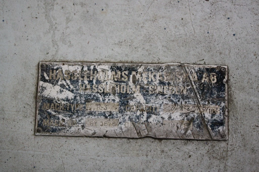 HASSLEHOLMNS MODEL R-3 ANGLE BENDING ROLL S/N 6Y1678: 3″ X 3″ X 5/16″ Capacity