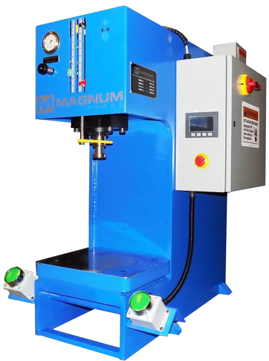 Magnum Model MCB-15A, Tonnage adjustable from 3.1 tons to 15.7 tons, 1" - 8" Adjustable Stroke, 16" Daylight, Warranty (to be free from defects in materials and workmanship for a period of eighteen months from the date of shipment).